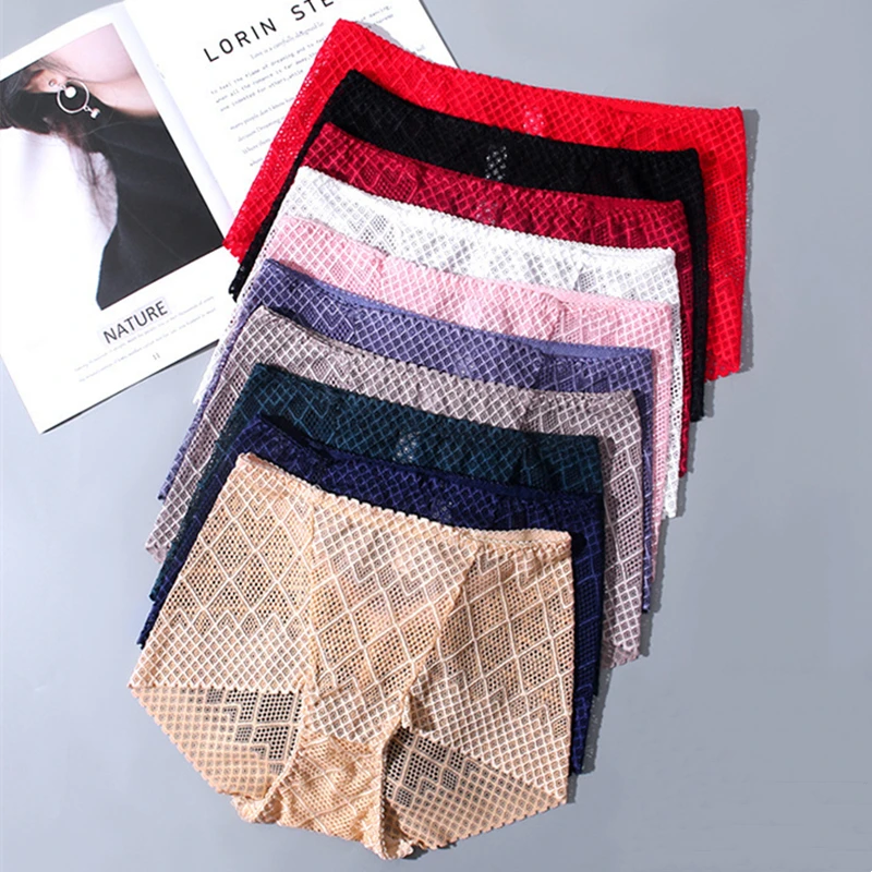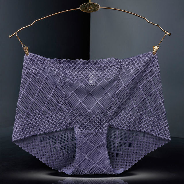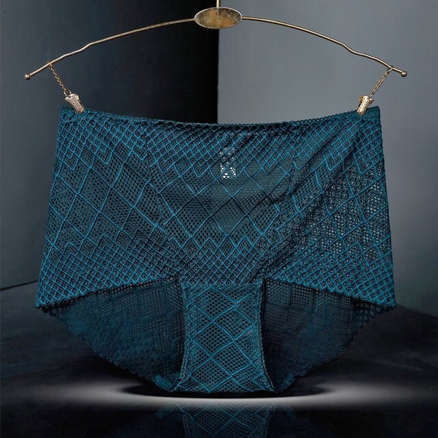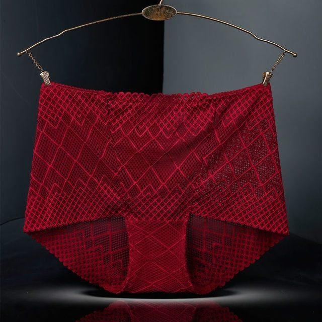 SANDL Women's Underwear Panties Sexy Lace Lingerie High Fit Female Boyshort High Waist Briefs Rhombus Mesh Underpant Plus Size