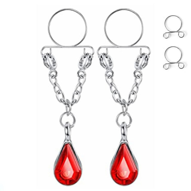 Sexy Tassel Crystal Butterfly Pendant Fake Nipple Ring for Women Girls Adjustable Faux Nipple Piercing Body Jewelry
