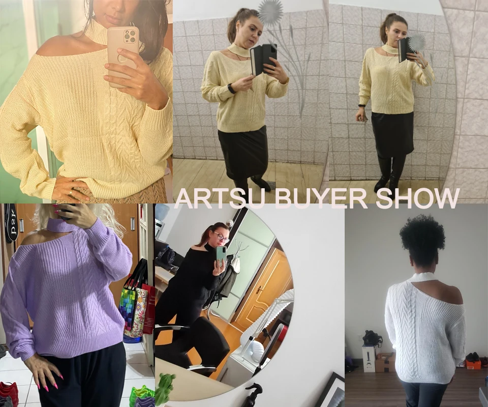 ArtSu Women's Sweaters 2019 New Casual Solid Loose Sweater Bare Shoulders Knitted Pullovers Winter Oversized Sweaters ASSW60310